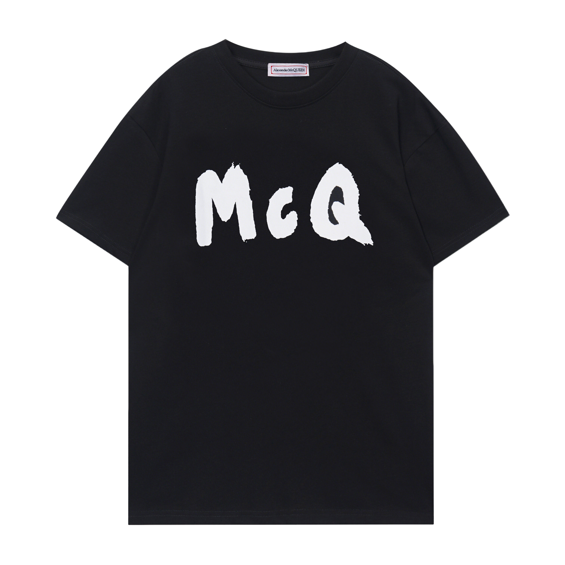 Alexander McQueen Black/White T - Shirt With Bold White McQ Brush - Stroke Lettering