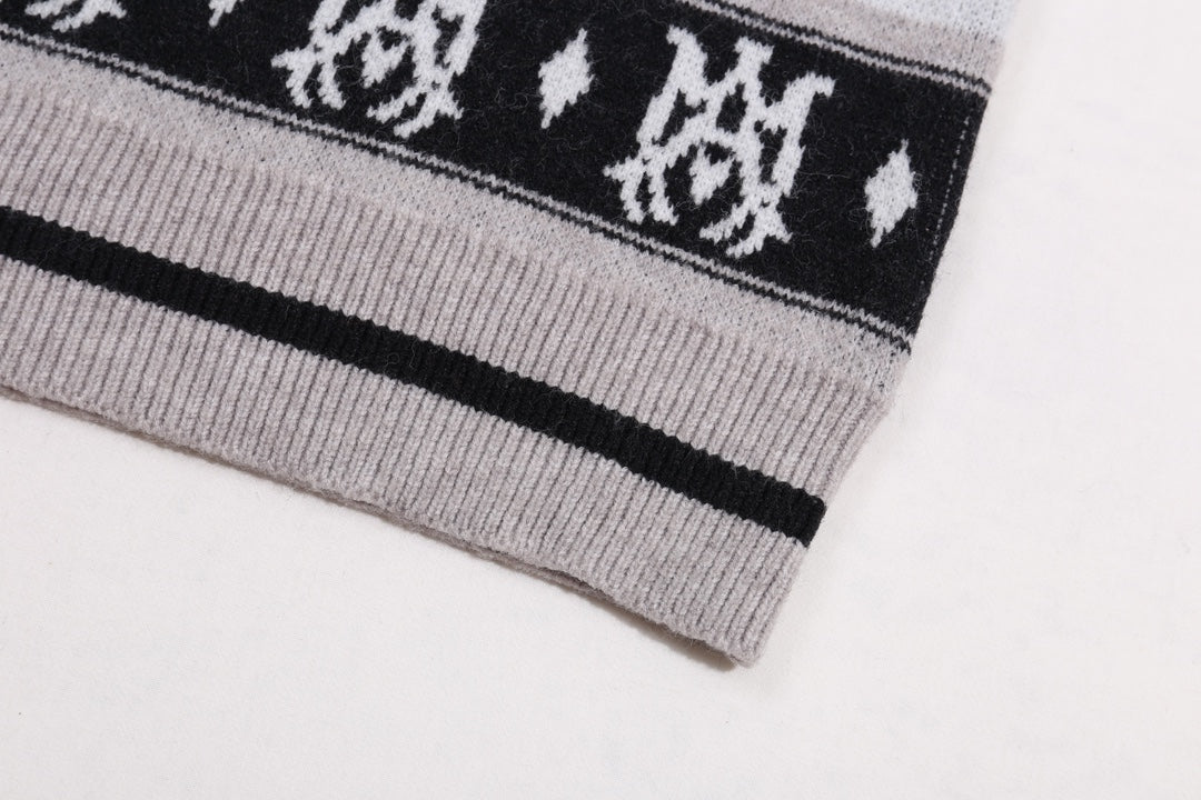 Replica Amiri sweater with brand motifs, made from premium knit fabric for comfort, features stylish striped design, ideal for casual outings and trendy wardrobe updates, a top choice for men wanting luxury knitwear with unique detailing.