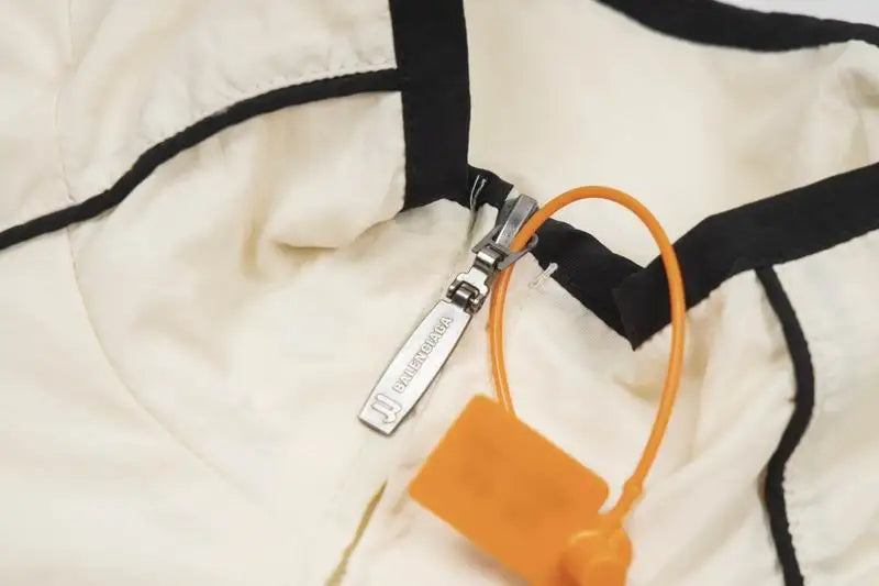 replica Balenciaga beige tracksuit, contrast black accents zip jacket and pants set, relaxed fit Balenciaga casual tracksuit for men and women, high - quality replica designer sportswear with stand - up collar