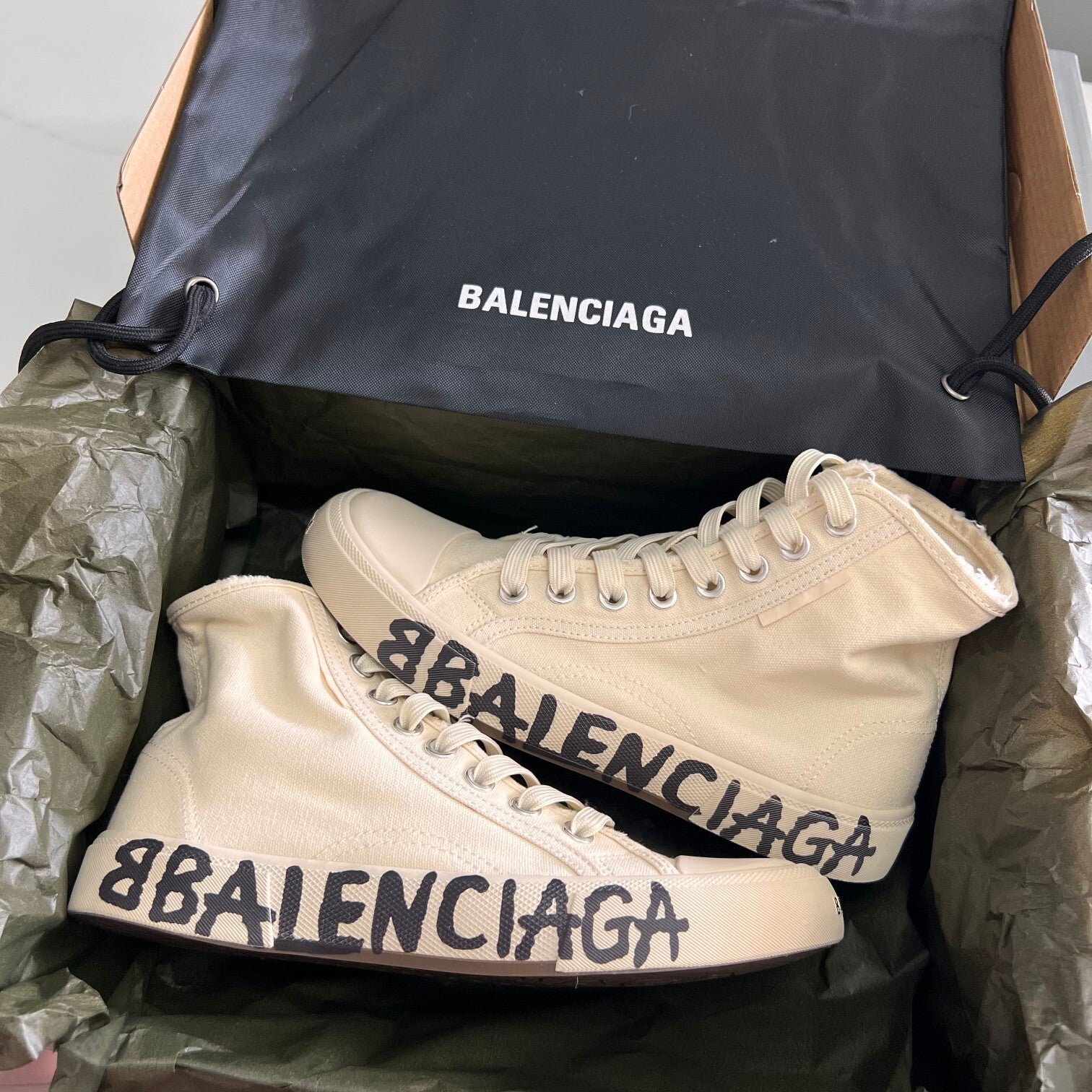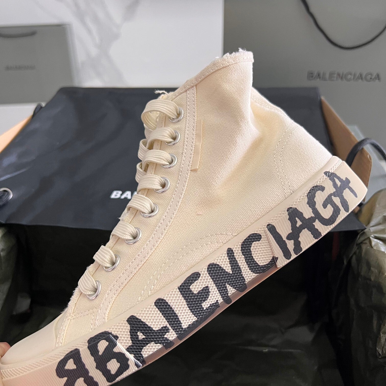 Balenciaga Unisex Beige High-Top Canvas Sneakers with Brand Logo Sole for Elevated Street Luxury