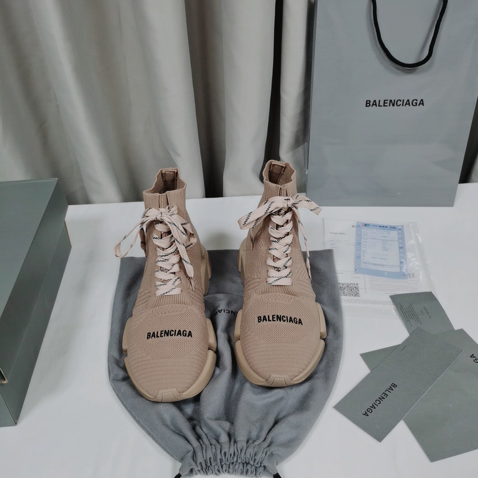 Balenciaga Unisex Beige Lace-up Sock Sneakers Stylish Footwear for Fashion-conscious Men and Women