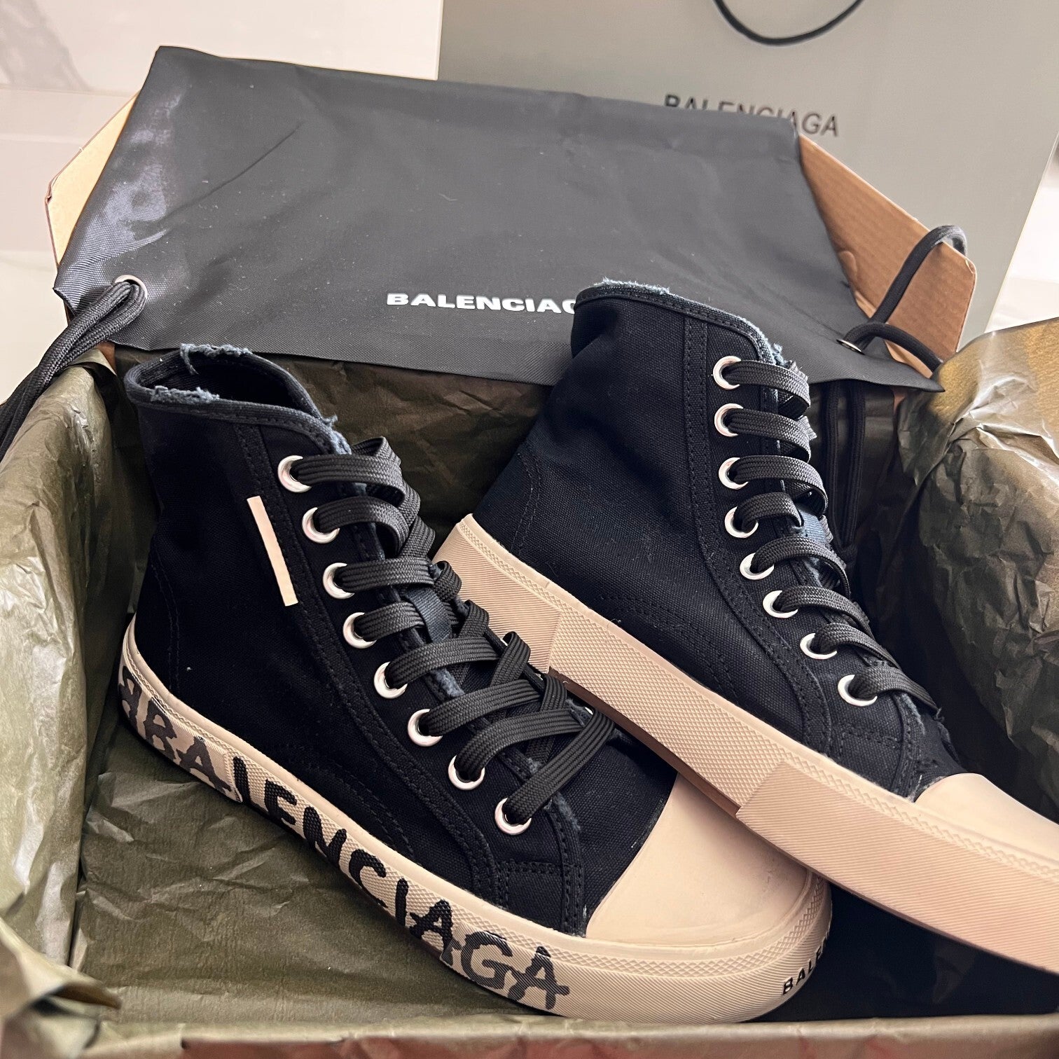 Balenciaga Unisex Black High-Top Canvas Sneakers with Brand Logo Sole for Timeless Luxury Streetwear
