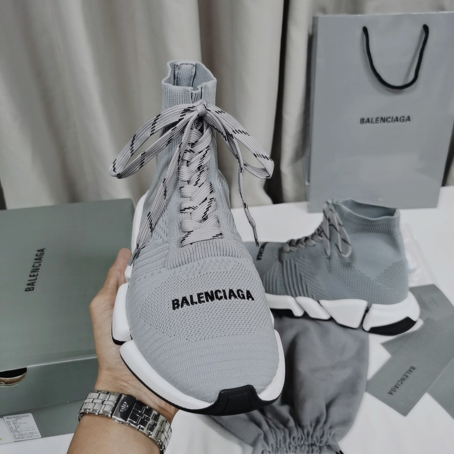 Balenciaga Unisex Grey Lace-up Sock Sneakers Fashionable Choice for Men and Women