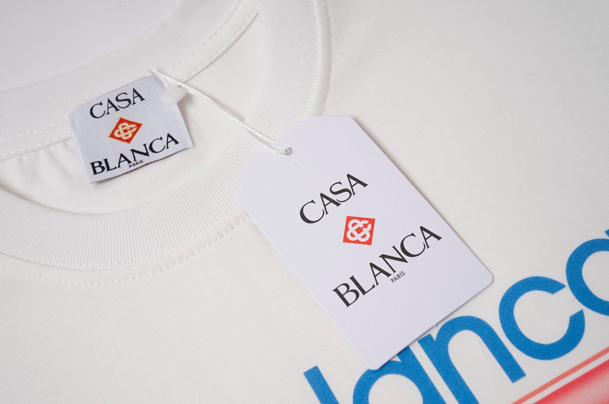 This replica Casablanca T - shirt showcases a vibrant “Tennis Club” graphic within a colorful triangle, blending sporty and artistic vibes. Made from high - quality cotton, it offers a relaxed, comfortable fit, perfect for casual outings or sporty - chic looks. Ideal for fashion lovers into luxury streetwear, it pairs well with shorts or joggers, adding a bold, eye - catching statement to your wardrobe.