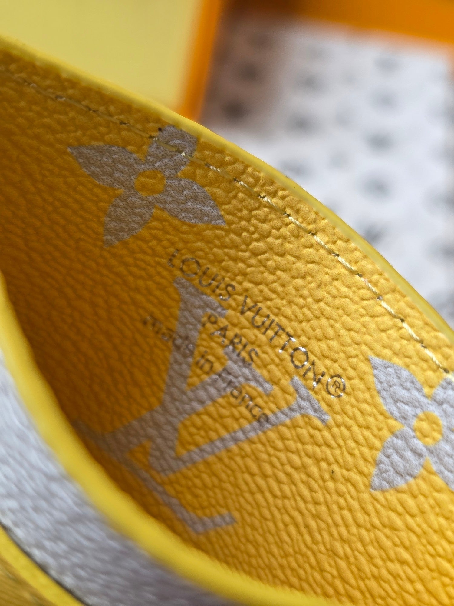 Elevate your everyday carry with this replica Louis Vuitton light blue card holder. Adorned with iconic gold monogram patterns and a stylish yellow stripe, it combines luxury and functionality. Perfect for storing cards and cash, it adds a touch of sophistication to your daily essentials. Ideal for fashion - forward individuals.