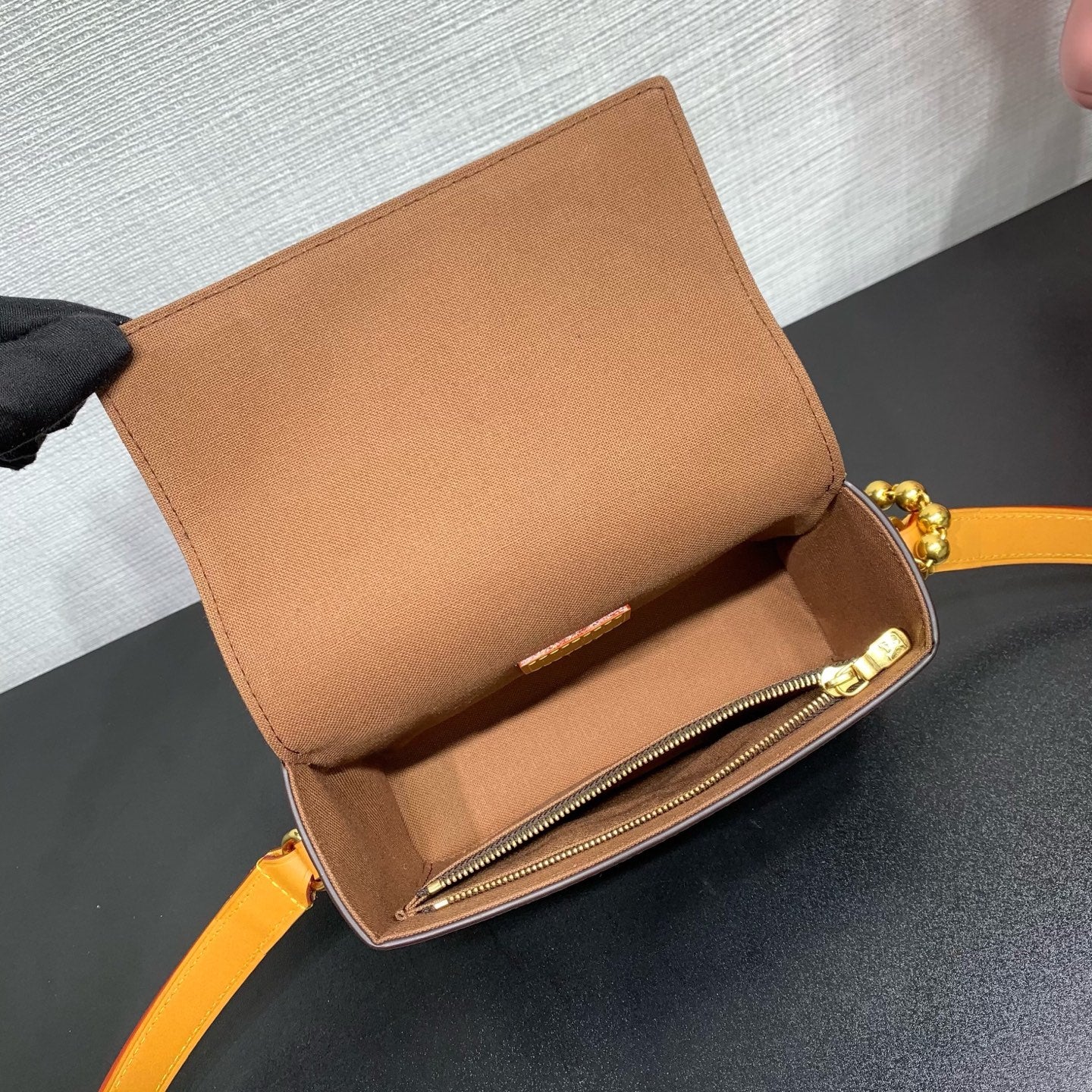 Discover this stylish replica Louis Vuitton crossbody bag. Featuring the iconic monogram pattern, a gold lock, and a beaded chain detail. The compact design is perfect for carrying essentials, adding a touch of luxury to any outfit. Ideal for fashion lovers seeking a blend of classic and trendy.