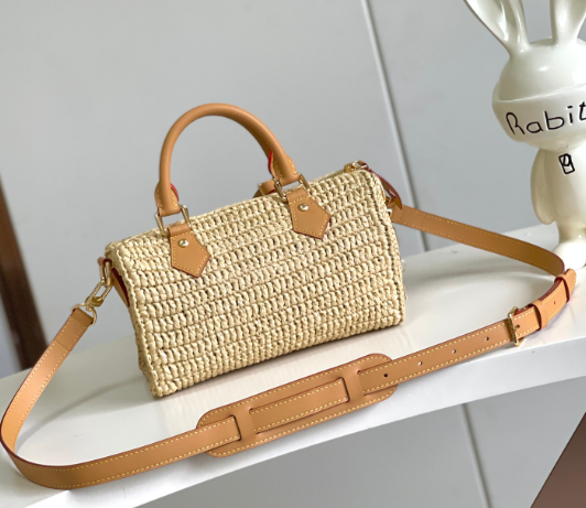 Chic Louis Vuitton Straw Handbag With Leather Accents For Summer Fashion Lovers
