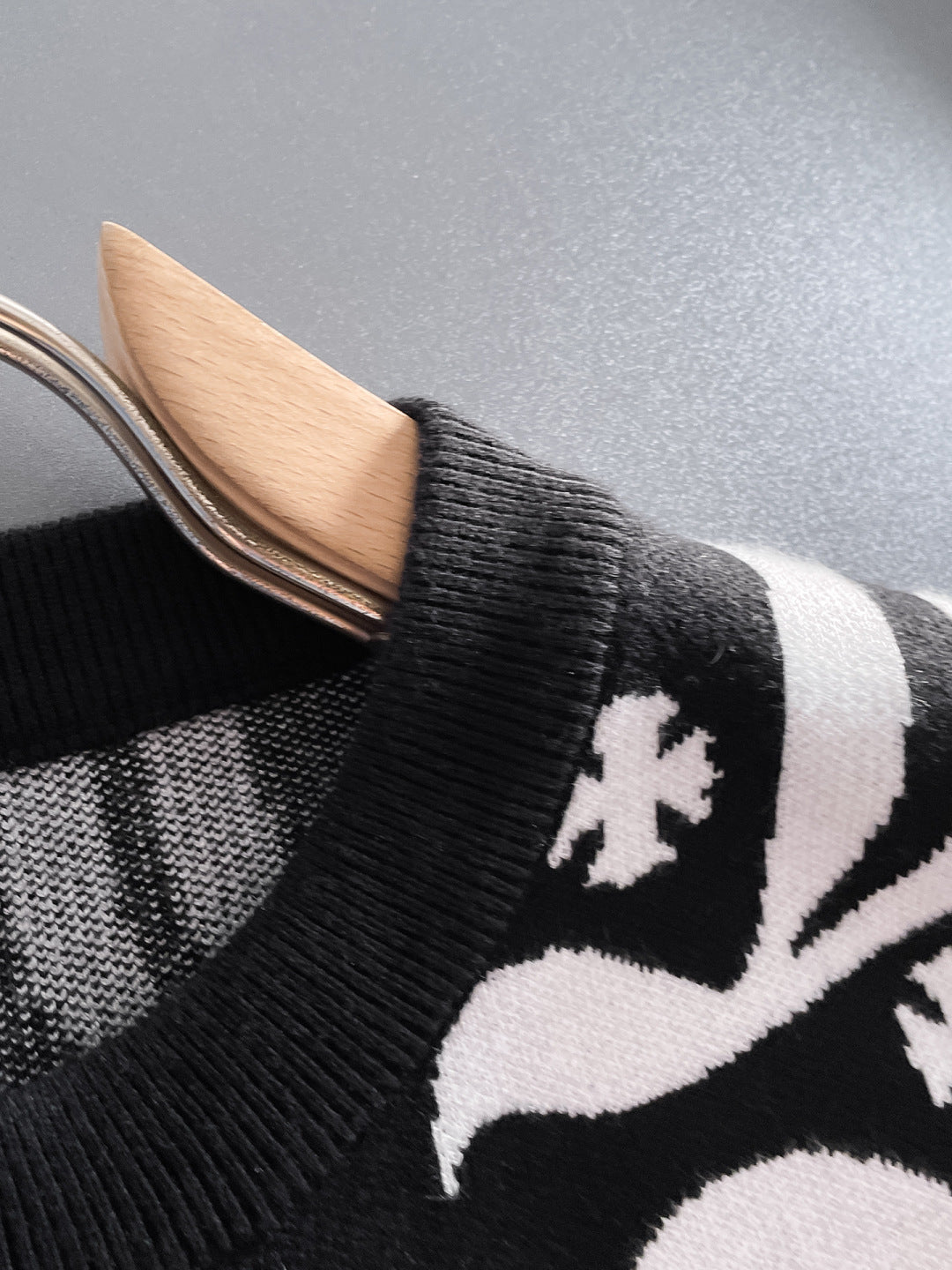 replica Chrome Hearts sweater with all-over Gothic letter and cross print, made from soft breathable knit fabric, offering a comfortable relaxed fit for everyday wear and streetwear styling, perfect for fashion enthusiasts seeking unique edgy luxury layers.