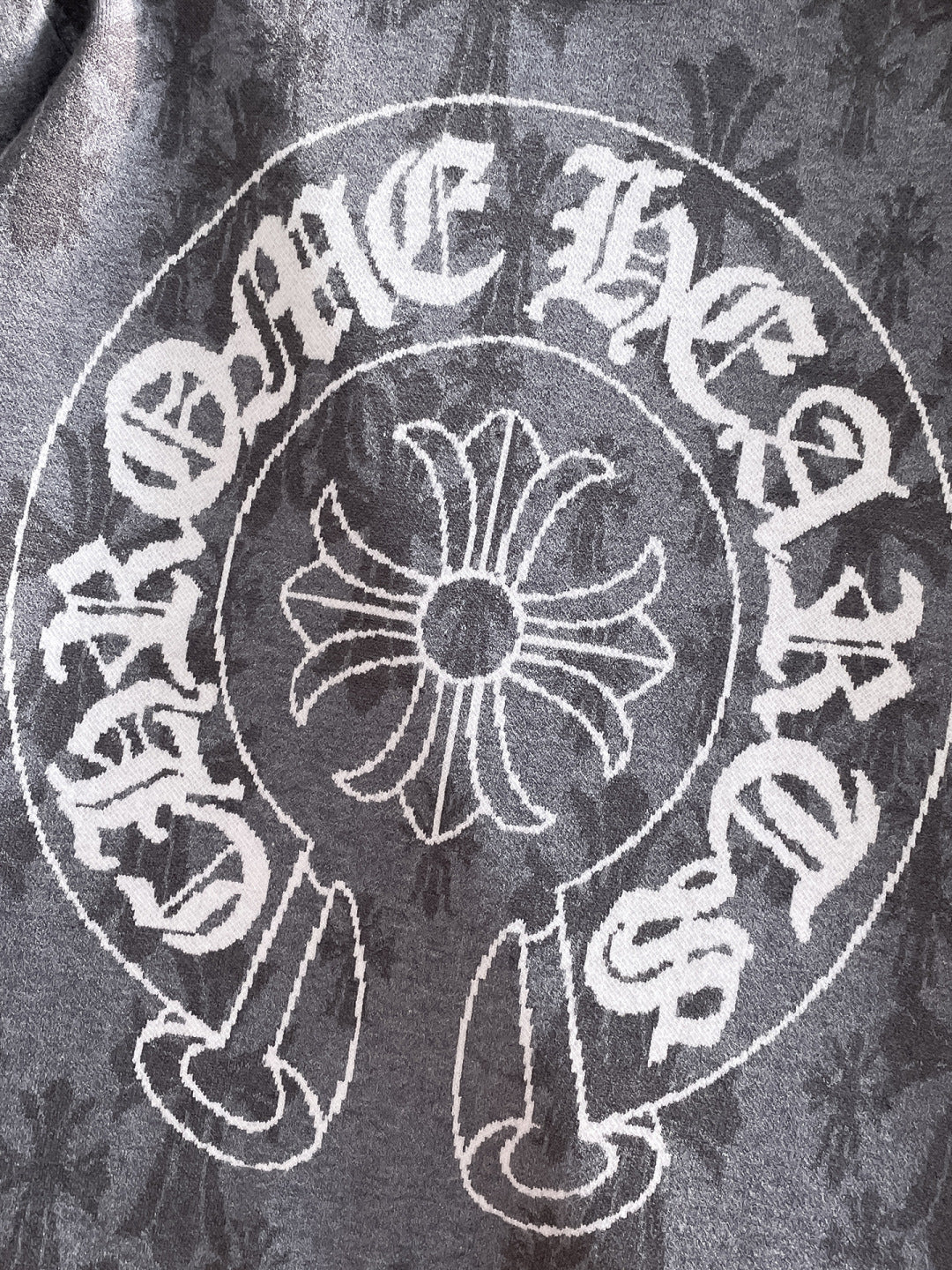 replica Chrome Hearts sweater with cross and logo print, made from soft durable knit fabric, offering a relaxed fit for casual everyday wear and streetwear styling, ideal for fashion enthusiasts seeking unique edgy luxury layers.