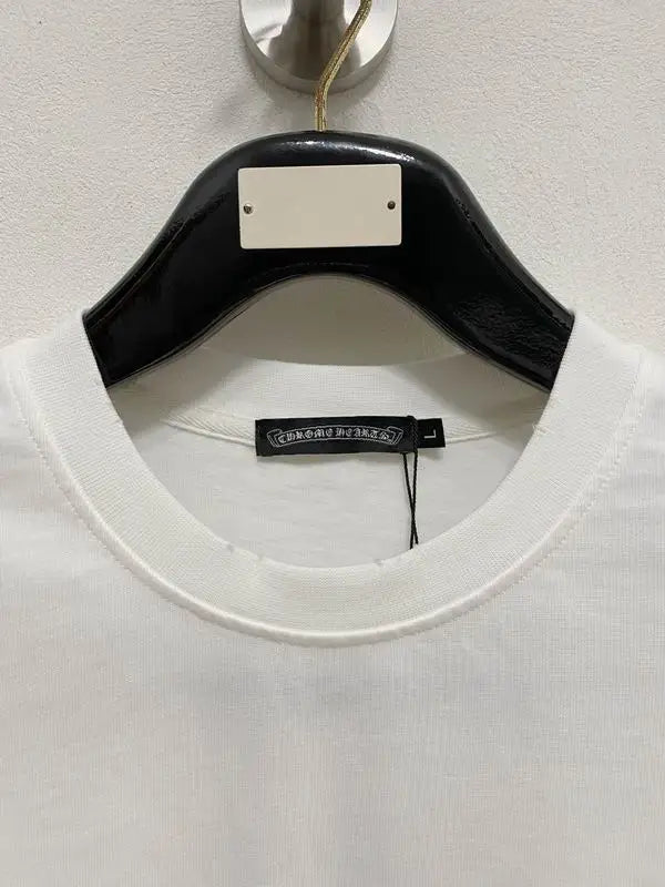 replica Chrome Hearts white T - shirt and shorts set, adorned with eye - catching blue cross motifs, crafted from premium soft fabric for comfort and distinctive luxury streetwear style, ideal for fashion enthusiasts seeking unique casual outfits to make a stylish impression.