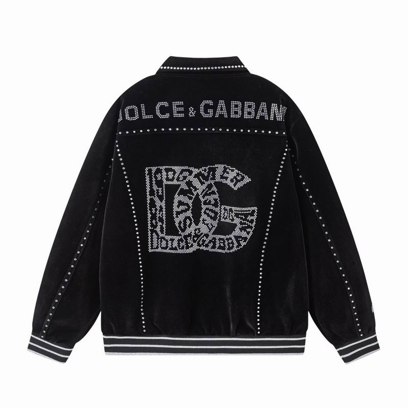 Elegant black velvet jacket by Dolce Gabbana, adorned with rhinestone DG logos, studs, featuring “1984” sleeves, luxury fashion piece.