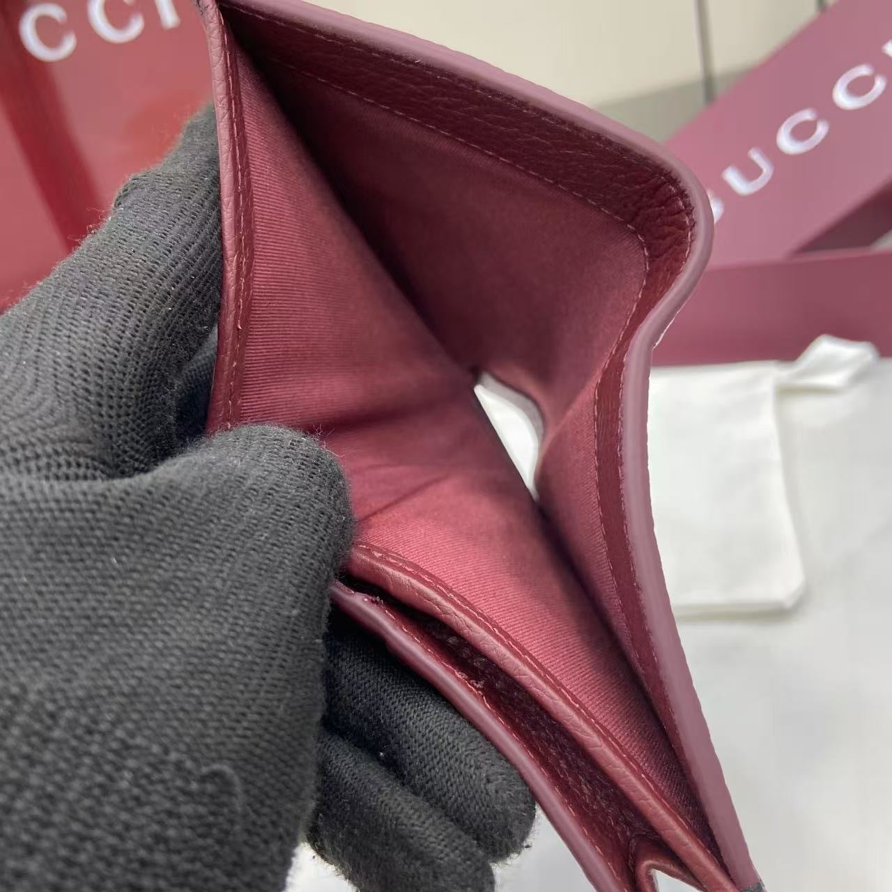 This elegant black replica Gucci wallet, adorned with the iconic gold GG logo, is crafted from premium pebbled leather. It offers compact storage for cards, cash, and small essentials, combining functionality with high - end fashion. Ideal for daily use or as a sophisticated gift, it reflects Gucci's renowned craftsmanship and classic design, perfect for those seeking a timeless luxury accessory to elevate their style.