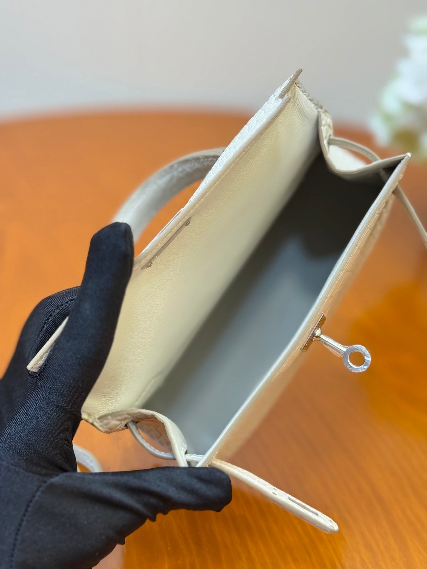 Elegant Hermès Kelly Bag in Cream Crocodile Leather with Strap 1920