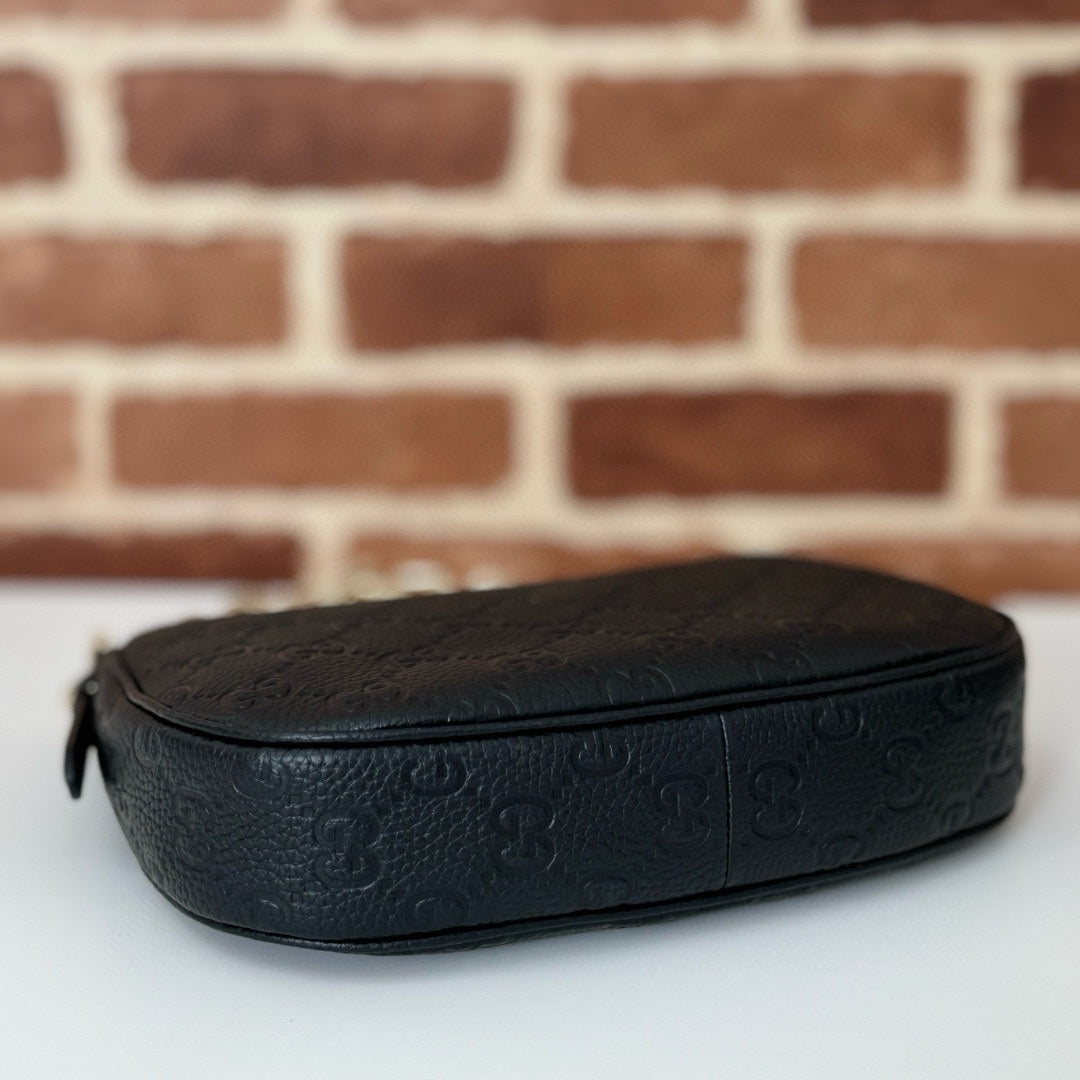 Gucci Black Embossed GG Leather Hobo Bag with Chunky Gold - Tone Chain Accent 815409