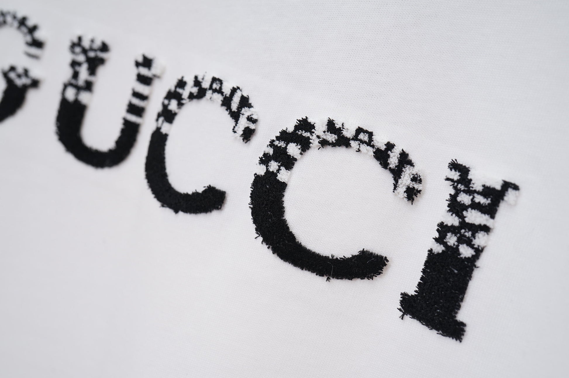 This replica Gucci white tee features the iconic signature logo, crafted from premium cotton for a soft and comfortable fit. The classic crew - neck and short - sleeve design offer a timeless silhouette, perfect for creating elegant and stylish outfits. Ideal for pairing with jeans, skirts, or designer accessories, it adds a touch of high - end luxury to any ensemble. Suitable for various occasions, from casual outings to formal events, appealing to those seeking to showcase their love for Gucci’s renowned fashion heritage. A must - have addition to your wardrobe for effortless sophistication.