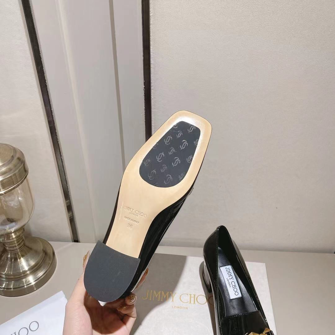 Jimmy Choo Women's Black Patent Leather Chain - Accented Loafers