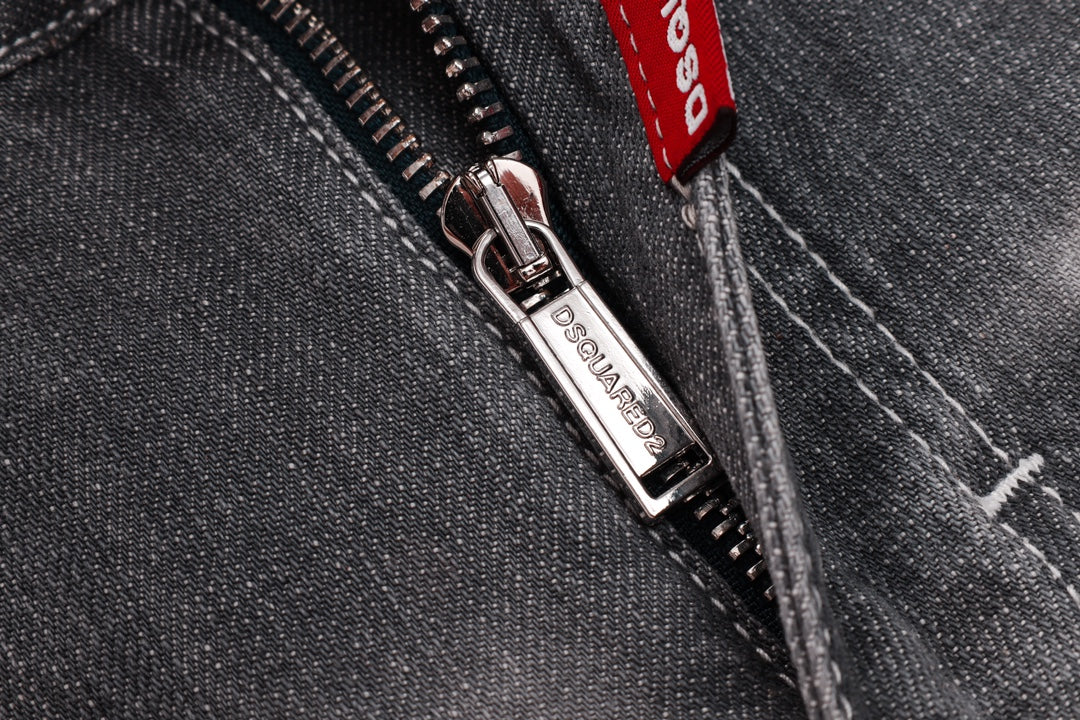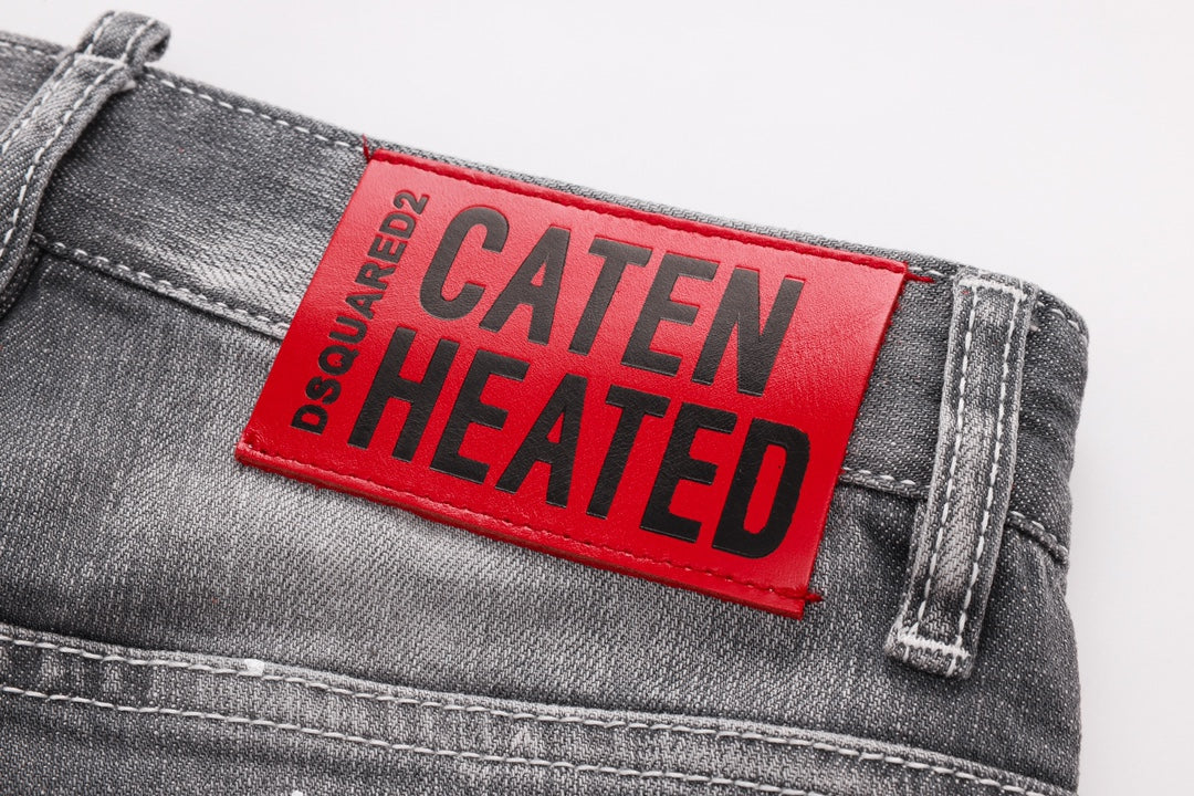 Replica Dsquared2 Jeans With Paint Splatter Details - Enjoy the iconic Dsquared2 look with these high-quality replica jeans, featuring distressed grey denim, artistic paint splatter accents, a slim fit, and signature branding for a stylish casual wardrobe staple.