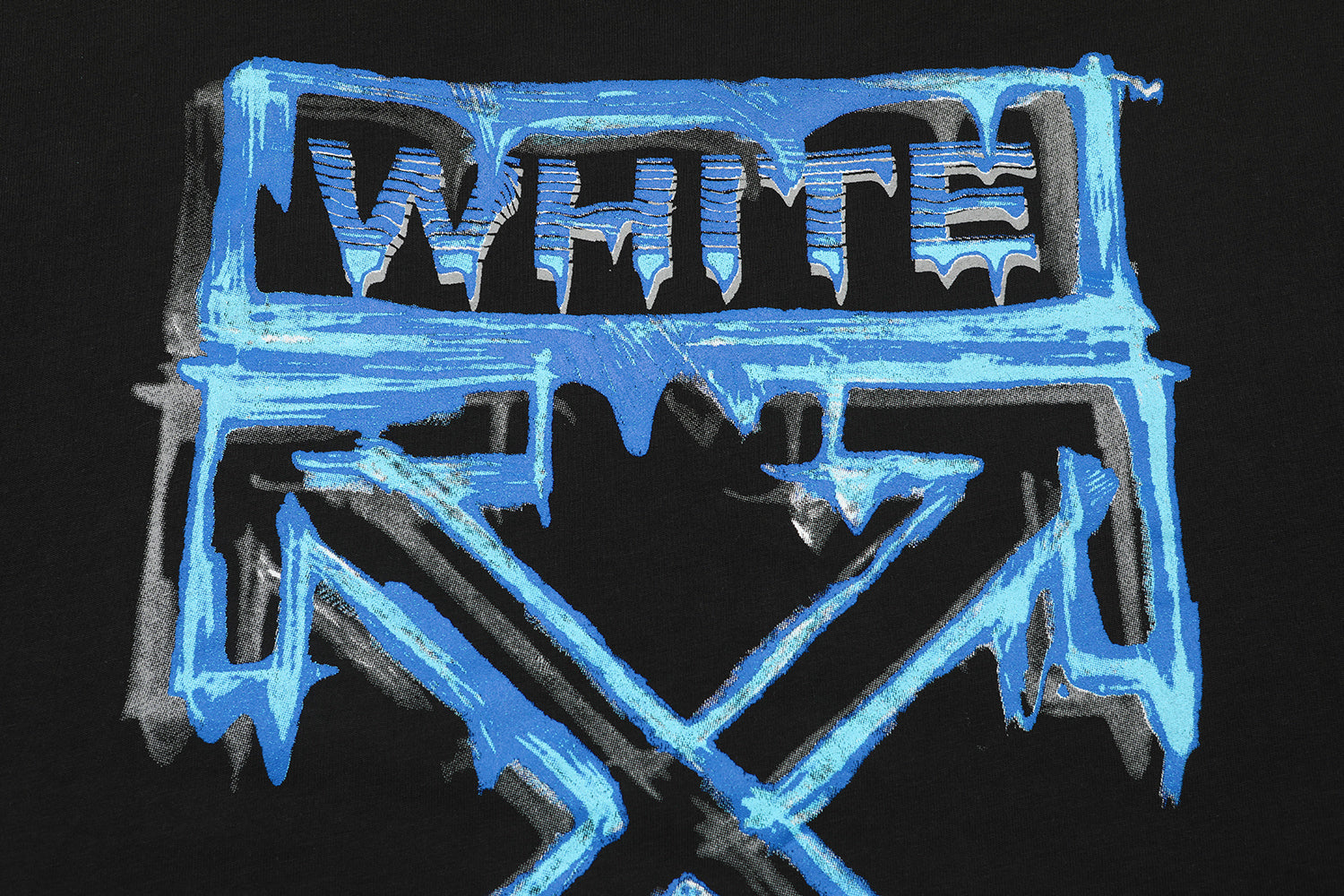 This replica Off White white T - shirt features a unique dripping effect logo design, adding an artistic touch to casual wear. Made from high - quality cotton, it ensures comfort and durability. Perfect for fashion enthusiasts seeking trendy streetwear, it combines the brand's iconic style with a modern, eye - catching graphic. Ideal for daily outfits or making a fashion statement, suitable for men and women who love contemporary designer apparel.