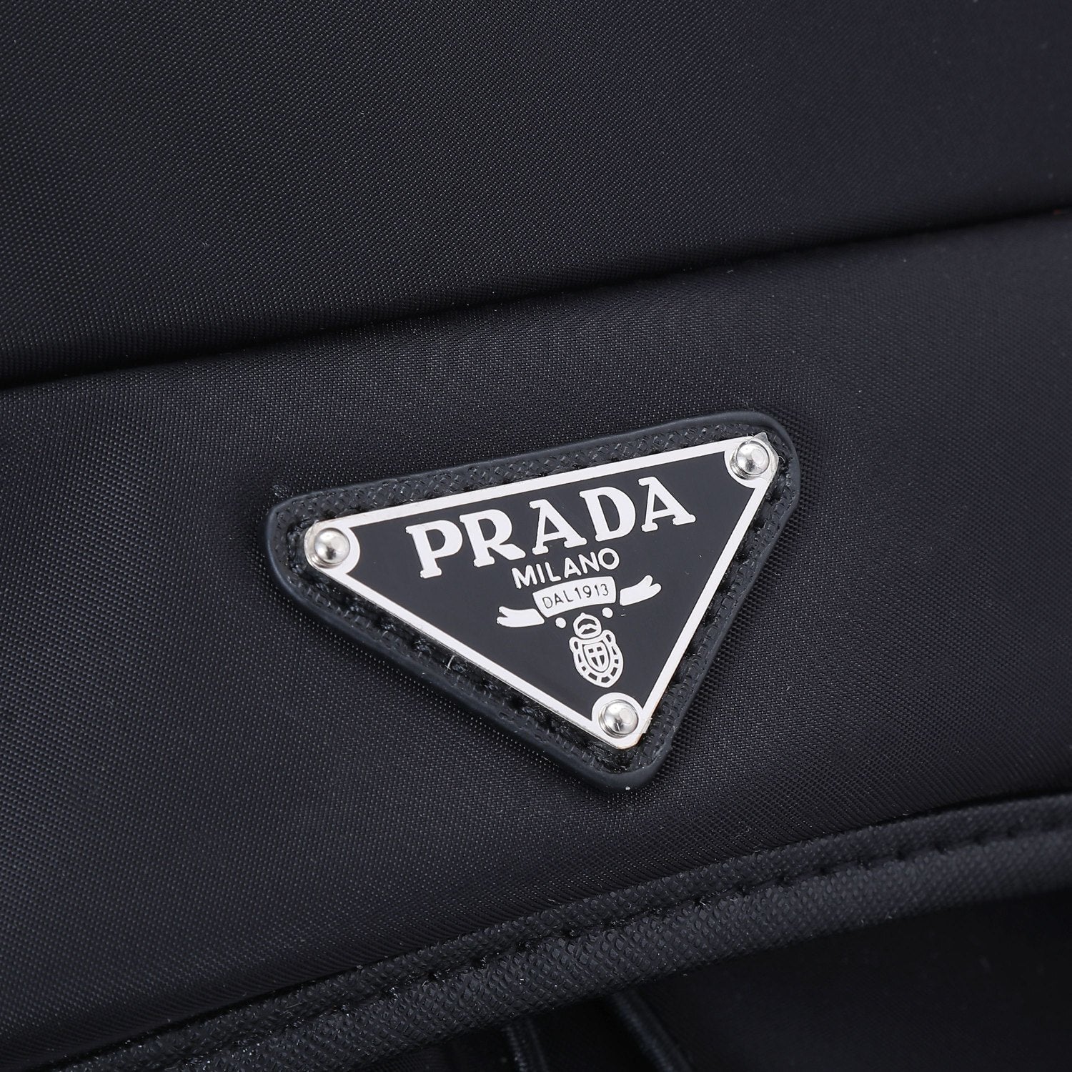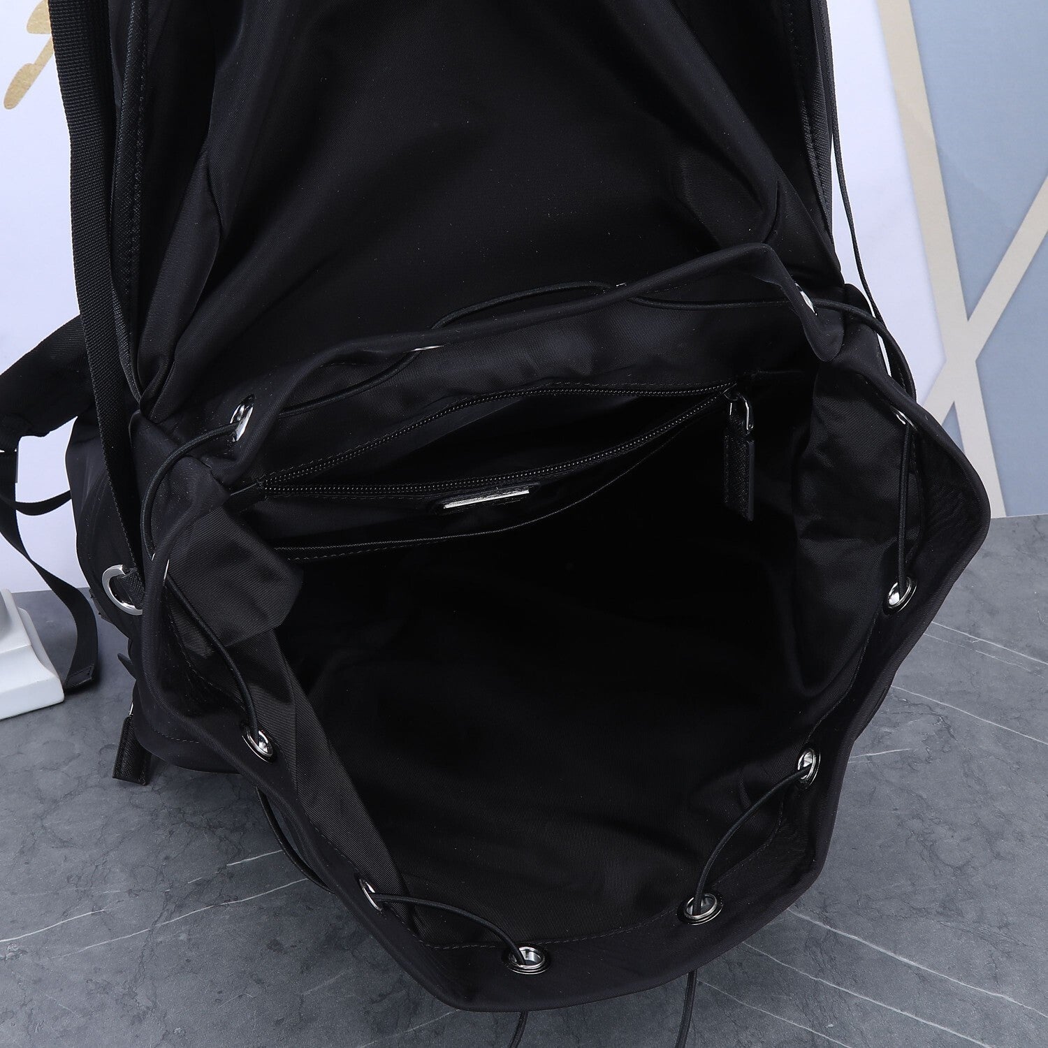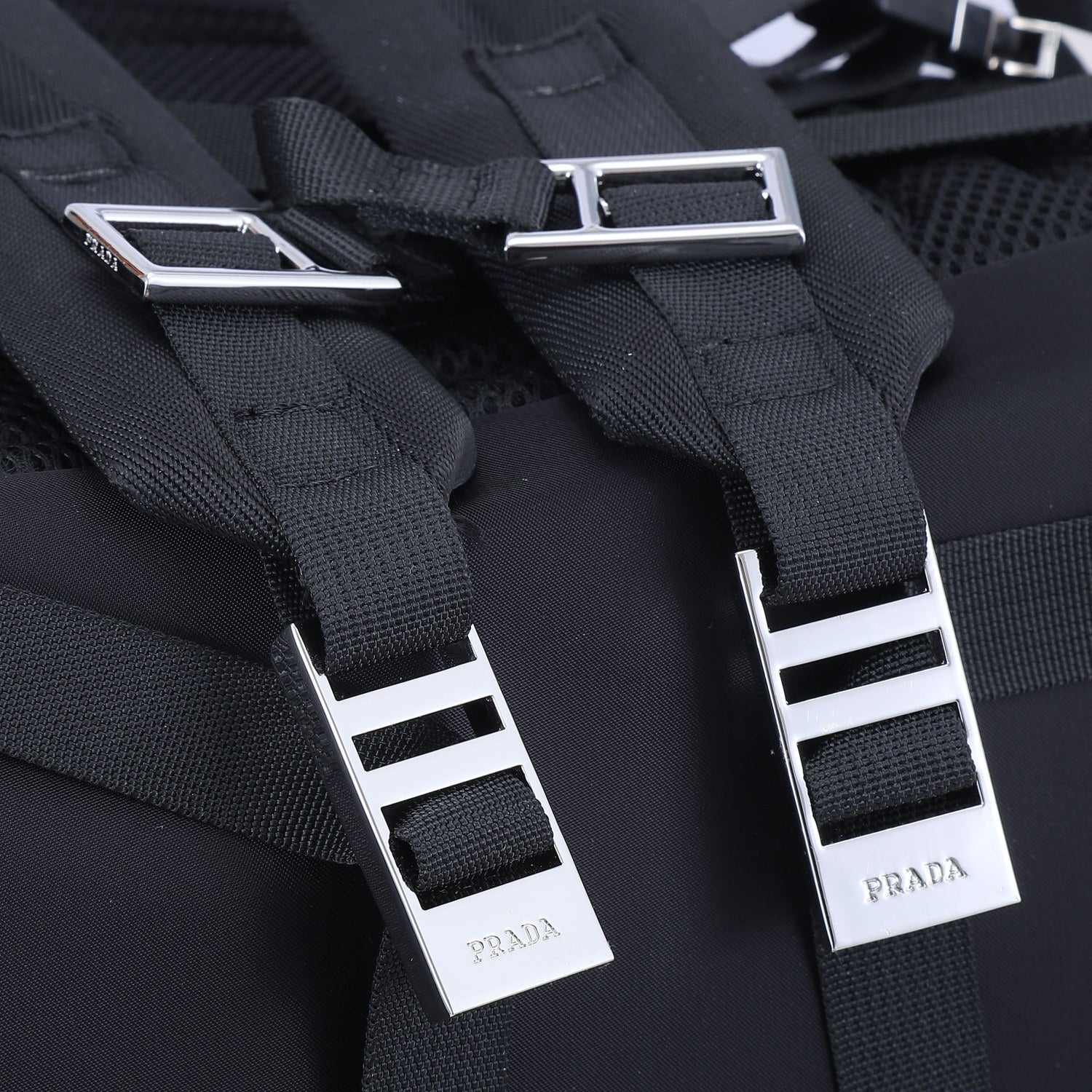 Prada Black Nylon Backpack With Multiple Pockets And Signature Logo 2VZ019