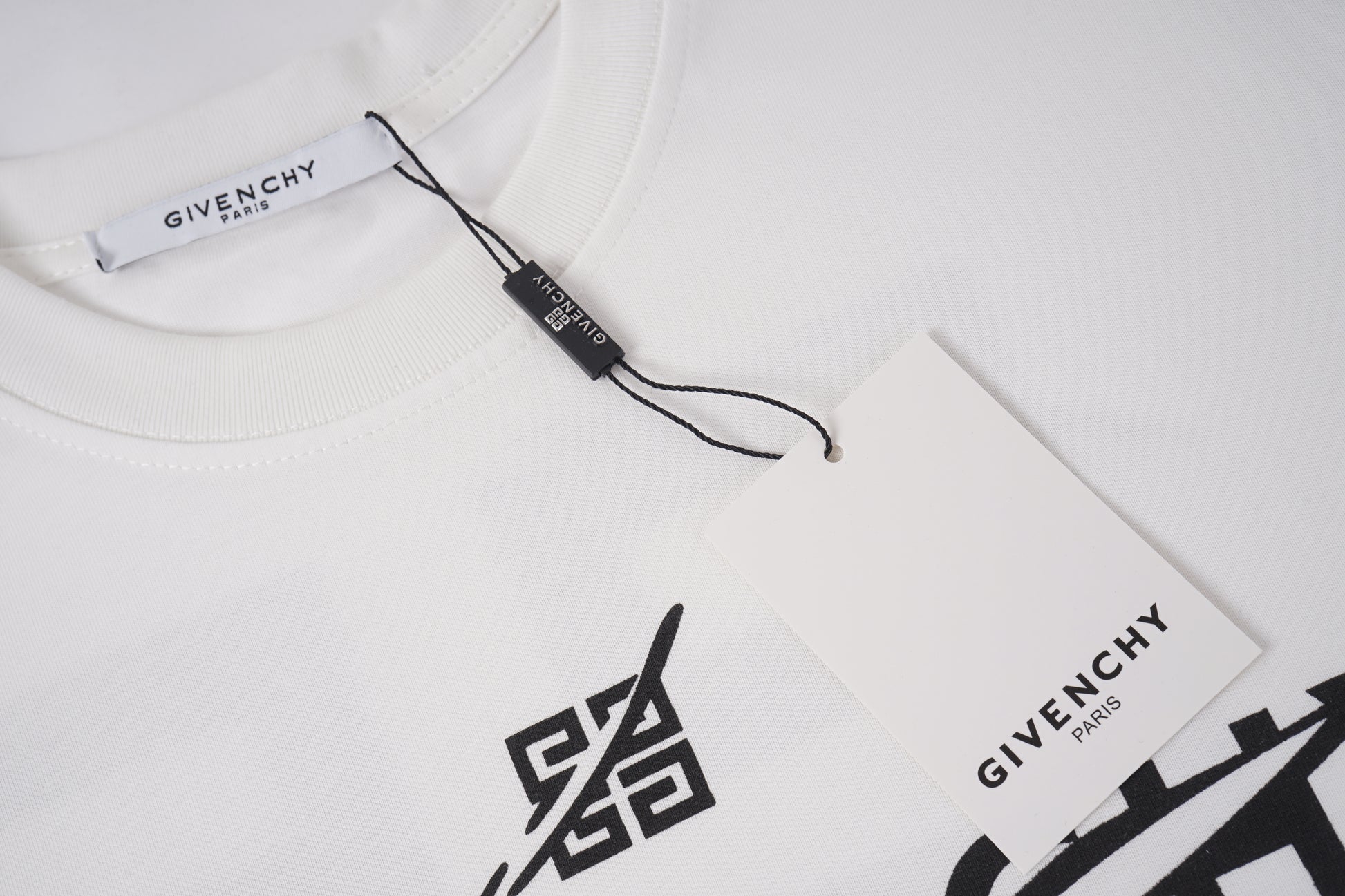 This replica Givenchy white T - shirt showcases a unique logo design, blending classic style with modern aesthetics. Crafted from premium fabric, it ensures comfort and durability. Ideal for casual outings or fashion - forward looks, it pairs well with jeans, shorts, or skirts. A must - have for Givenchy enthusiasts seeking to elevate their wardrobe with iconic branding and high - quality apparel.