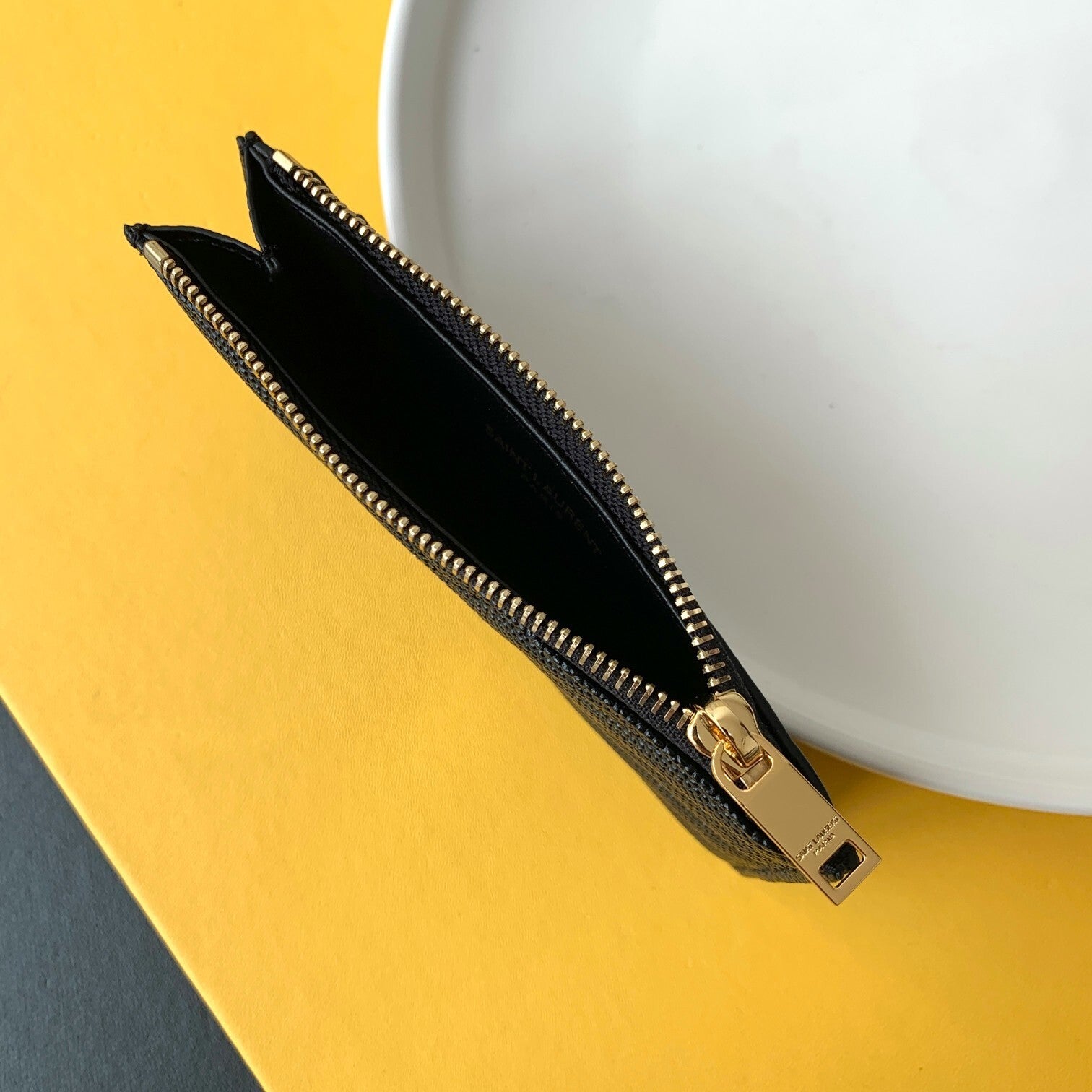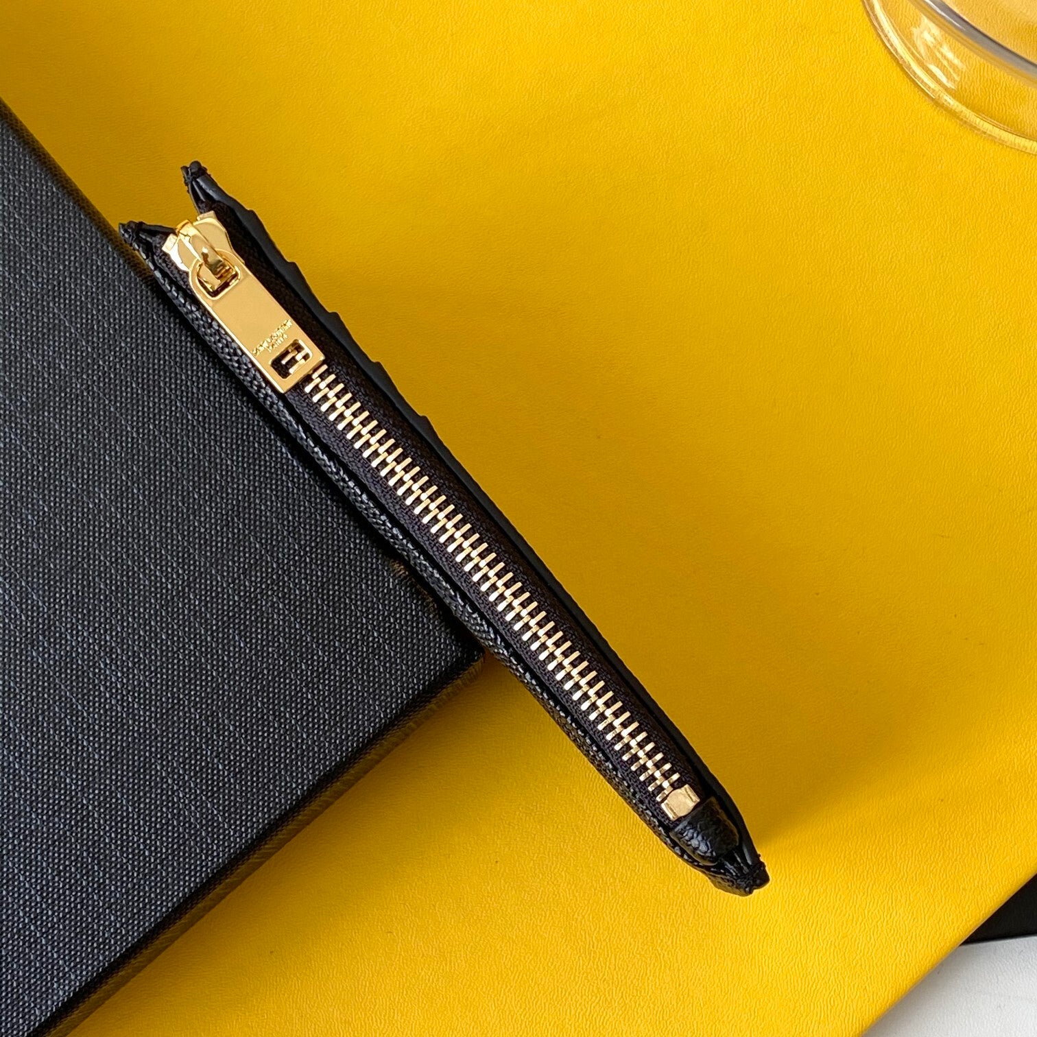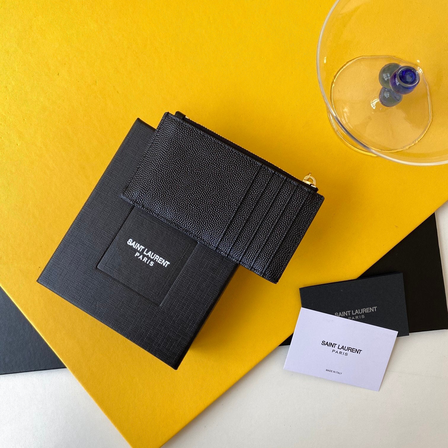 This replica Saint Laurent card holder combines luxury and practicality. Crafted from quilted leather, it features a sleek silver YSL logo and a convenient zip closure. Perfect for organizing cards and small essentials, it adds a touch of high - end fashion to your daily carry, ideal for fashion - conscious individuals seeking premium accessories.